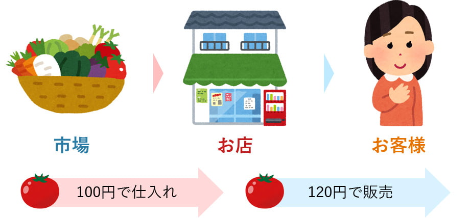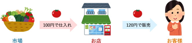 一般的な商品の販売は、下記のようにお店が利益を上乗せして店頭に商品が並びます。