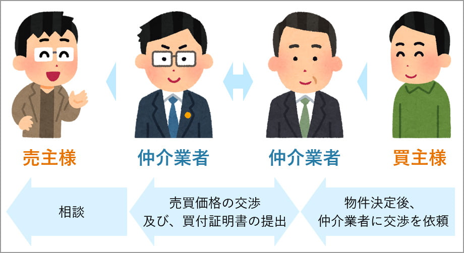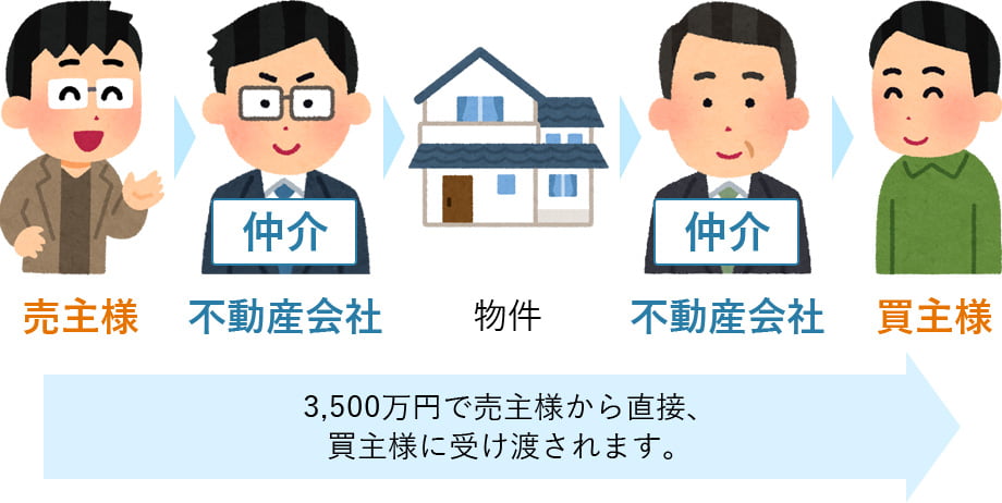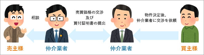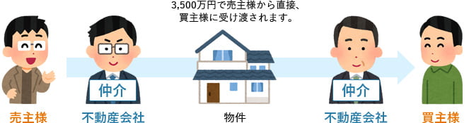 しかし、実際は下記のように受け渡しのお手伝いをするだけです。その手数料として「仲介手数料」が発生します。