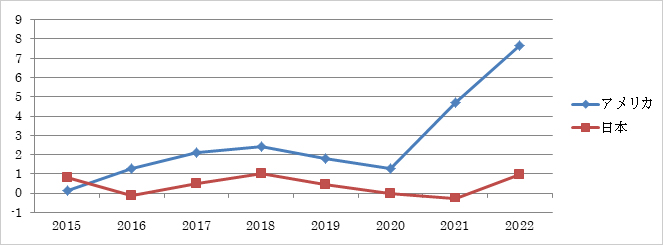 日本もアメリカの政策金利の利上げに追従するか気になるところではありますが、そもそも、アメリカと日本の現状には大きな違いが一つあります。