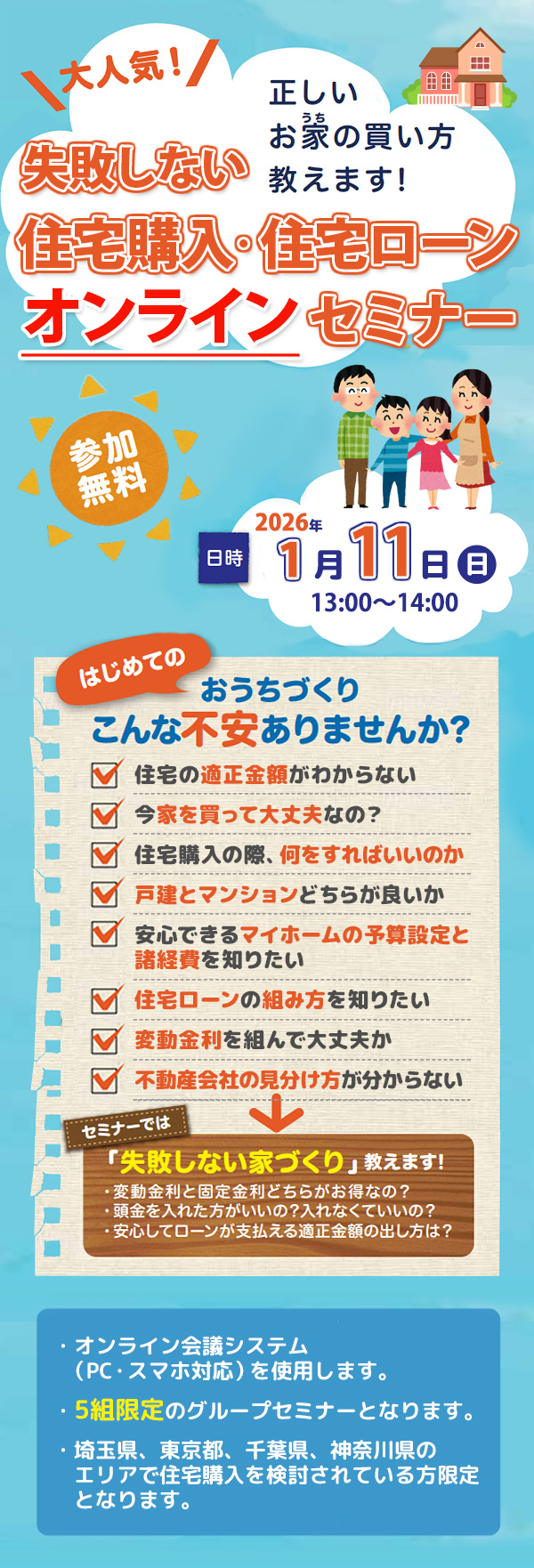 - 【無料】失敗しない住宅購入・住宅ローンオンラインセミナー